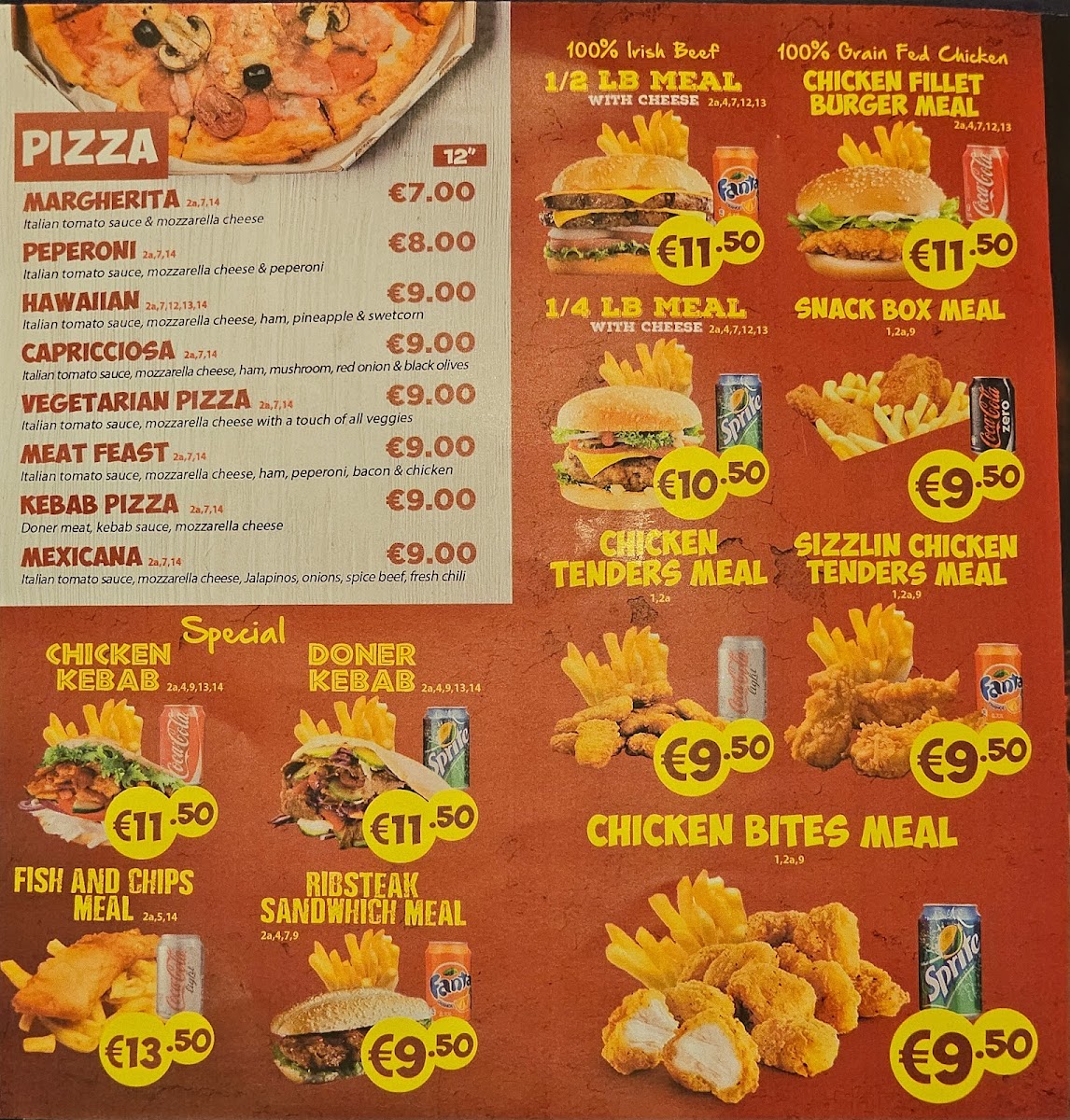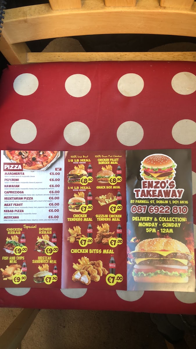 Enzo's Take Away offers a delightful selection of pizzas that cater to a variety of tastes. Their Pepperoni Pizza is a crowd favorite, with its generous amount of spicy pepperoni and perfectly melted cheese. For those who enjoy a more classic combination, the Capricciosa Pizza provides a savory mix of ham, mushrooms, and olives, offering a balanced and satisfying bite. The Margherita is a timeless choice, featuring a simple yet delicious topping of fresh mozzarella, basil, and a rich tomato sauce. Each pizza is crafted with care, ensuring the perfect balance of flavors and textures. The variety on the menu ensures there is something for everyone, whether you're craving a spicy, hearty, or traditional option.